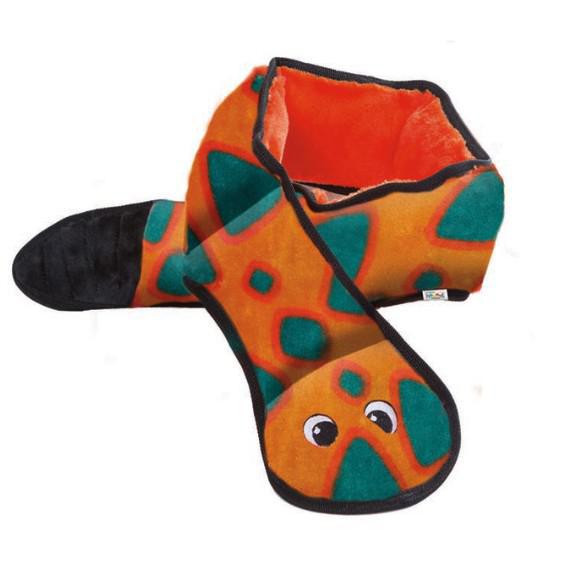 Outward Hound Invincibles Dog Toy Snake 6 Squeakers Orange/Blue