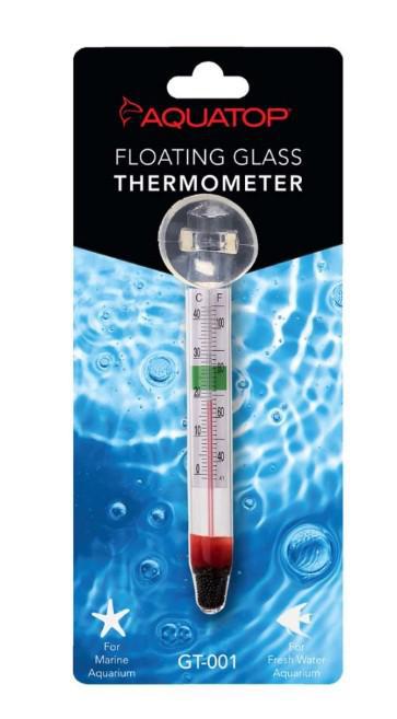 The Aquatop Floating Glass Thermometer gives you the ability to easily monitor the water temperature in your aquarium. The thermometer is easy to read and has a safe temperature range display which provides the recommend temperature parameters for most tropical fish. The Aquatop Floating Glass Thermometer includes a suction cup mount which securely attaches to any flat glass or acrylic aquarium surface. Plus, the thermometer will float if knocked loose by fish, snails or during routine maintenance. Safe for Fresh or Saltwater use.
