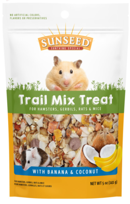 Made with real dried banana, coconut, and other delicious ingredients, Trail Mix Treat is a hearty snack and fun foraging treat for hamsters, rats, and mice. Makes for a great foraging snack or flavorful pellet food topper!